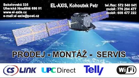 Plánujete nákup satelitu nebo elektro příslušenství? Máte zájem o TV, WiFi nebo GSM? Pak navštivte elektro prodejnu EL-AXIS v Uherském Hradišti, kterou najdete směrem na Jarošov nedaleko hlavní brány do Mesitu.
